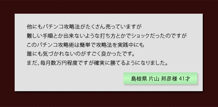 もう、遠回りせずに正々堂々と勝てるパチンコ攻略法を手に入れていただきたいです。