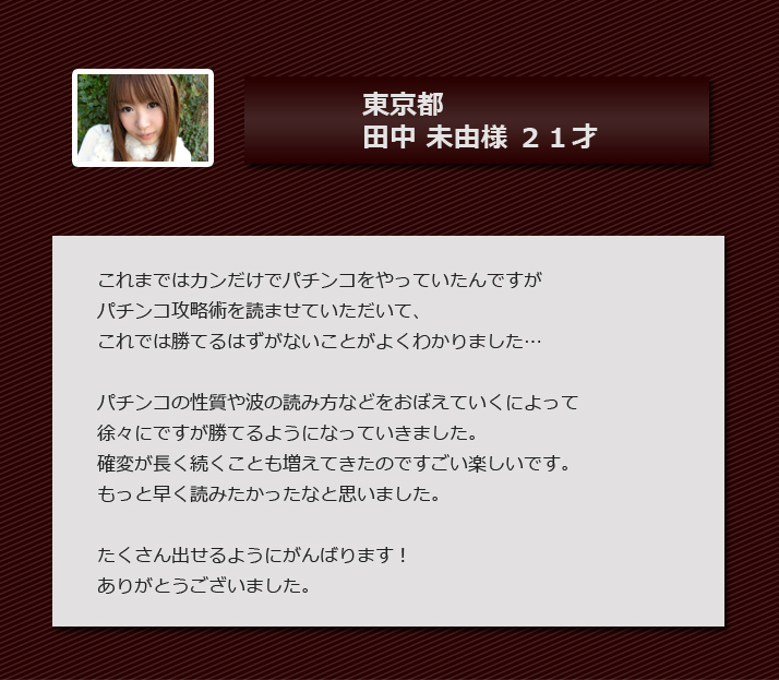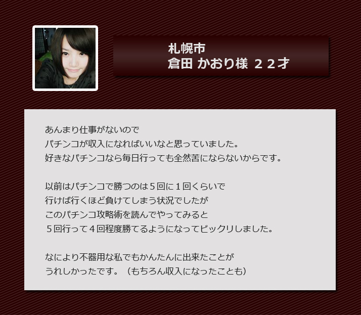 私は一人でもパチンコで勝てない悩みの方のお力になりたくて