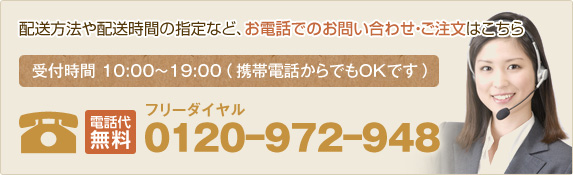 配送の件など、ご質問に関しては【電話代無料】の0120-972-948まで